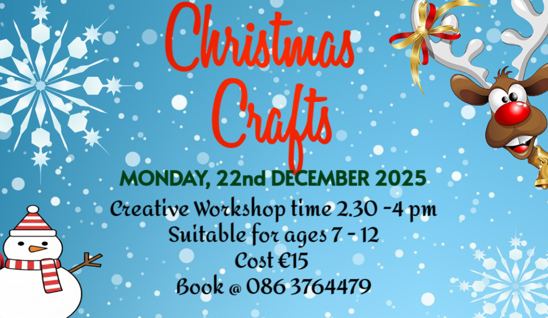 Christmas crafts children’s workshop, Monday December 22nd 2:30pm – 4pm, €15.