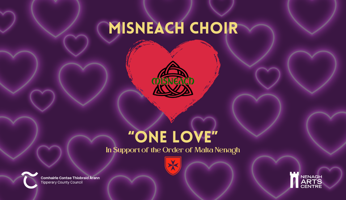 Join Misneach Choir for an uplifting evening of love and music at Nenagh Arts Centre this Valentine’s season. “One Love” brings together beautiful choral performances alongside special guest artists including Grace Shesgreen, Robbie Glennon, Martin “Twisty” O’ Brien, Cleo Griffen and the Nenagh Ormond Brass band for an inclusive celebration of love in all its forms.